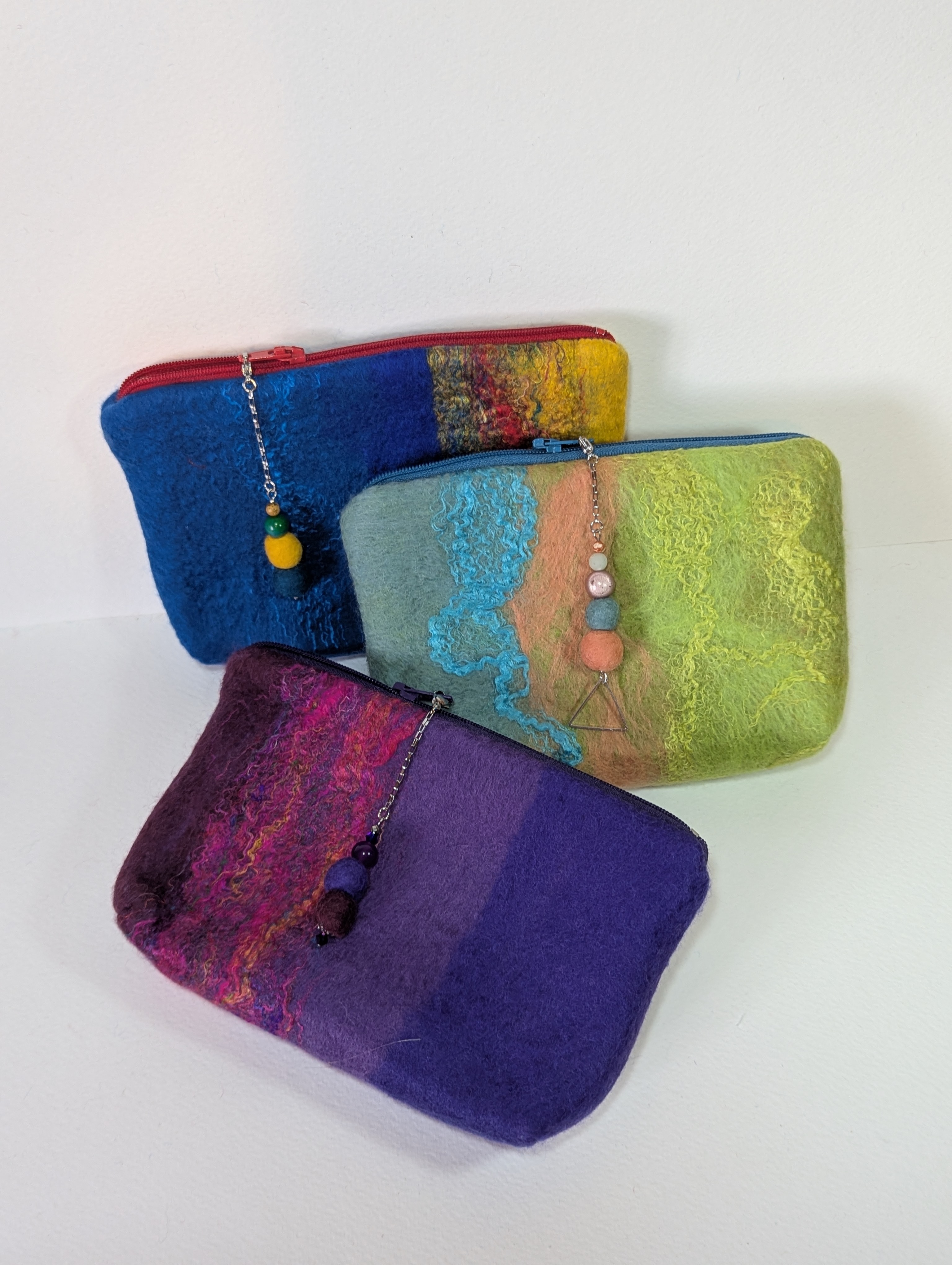 Feutrées de laine mérinos et de soie elles sont douces et jolies avec leurs breloques serties de pierres semi-précieuses, de billes de laines et de charmes argentés.