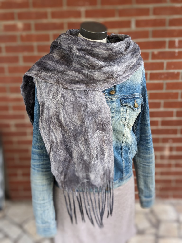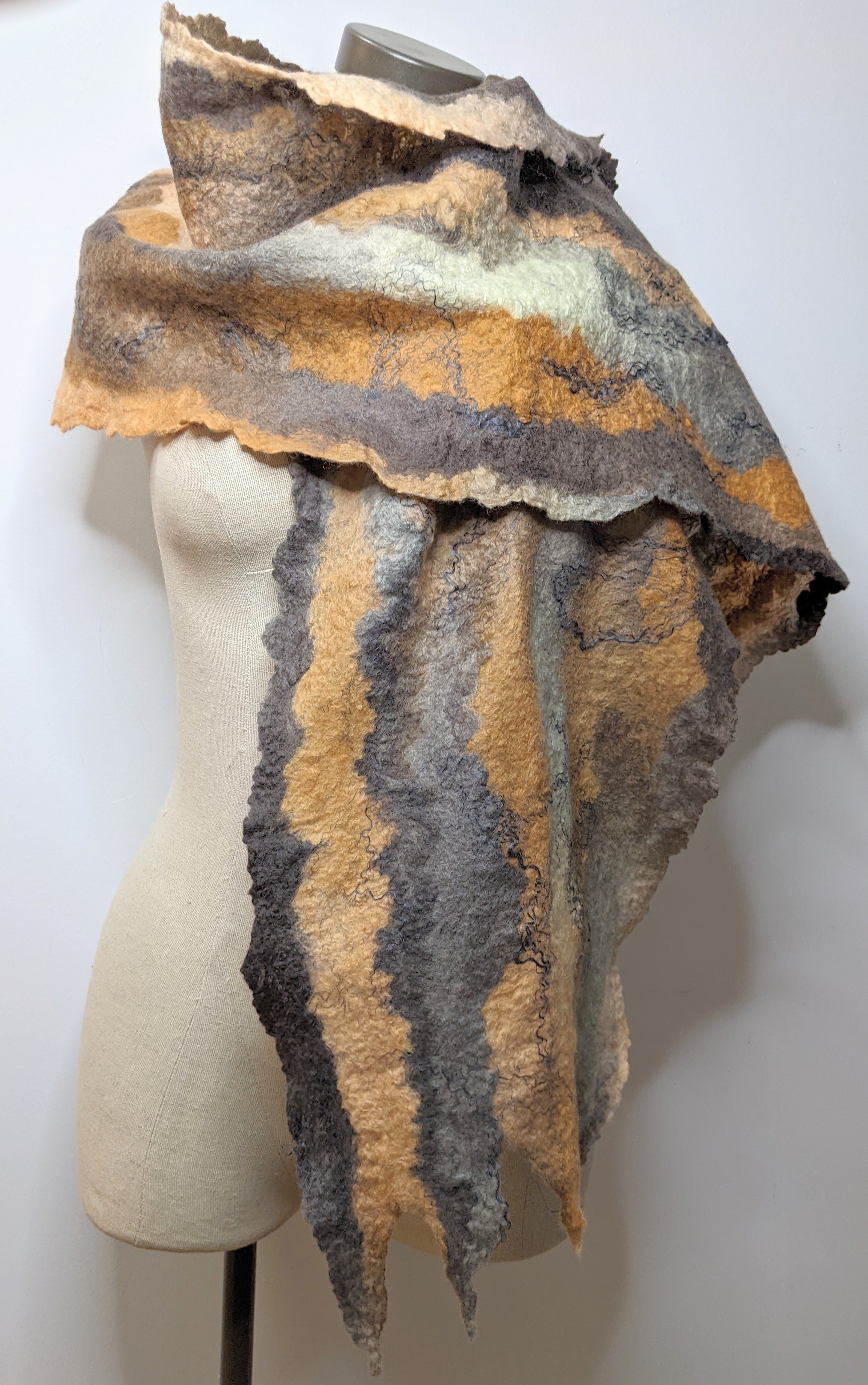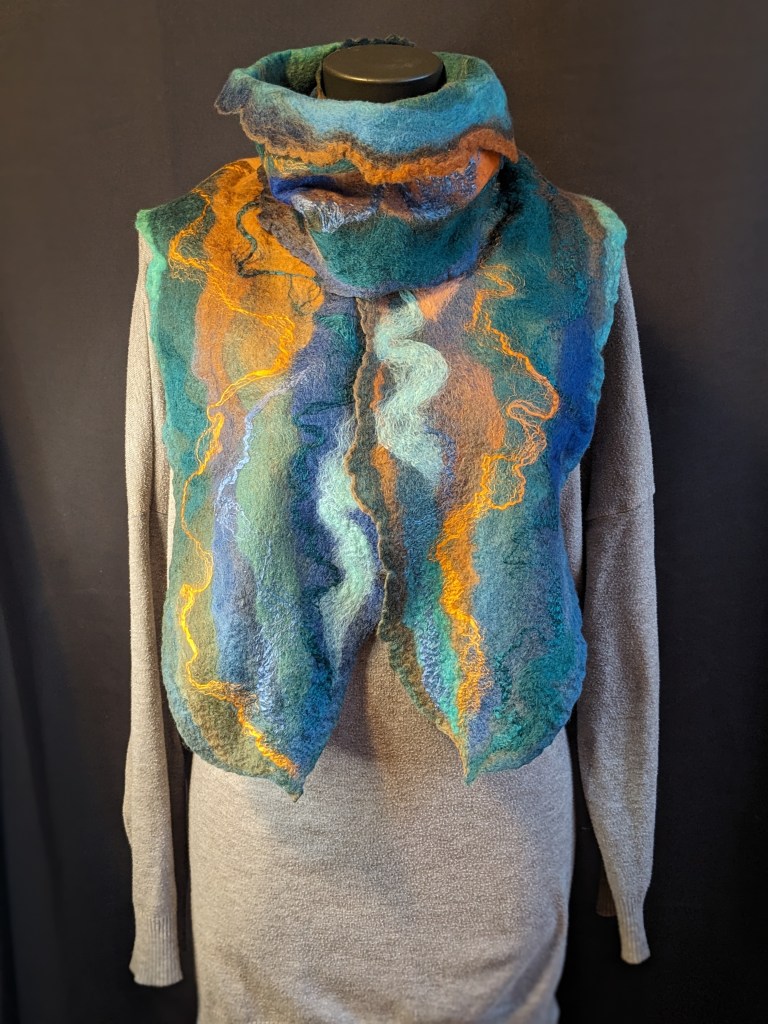 Rien de plus doux que la laine mérinos, la seule laine qui ne pique pas! Décoré de soie chatoyante, chaque foulard est absolument unique. Une touche de luxe à vos automnes, une chaleur enveloppante pour les froids plus rigoureux.